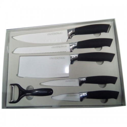 PROFESSIONAL KITCHEN KNIVES: Designed to enhance your kitchen experience. The 6-Piece Stainless Steel kitchen knives offer the professional quality you need for all your kitchen tasks. Extraordinarily sharp stainless steel blades resist corrosion. Stylish as well as functional This attractive embossed set of knives is a combination of luxurious look and carbon fibre for a sleek and modern appearance.